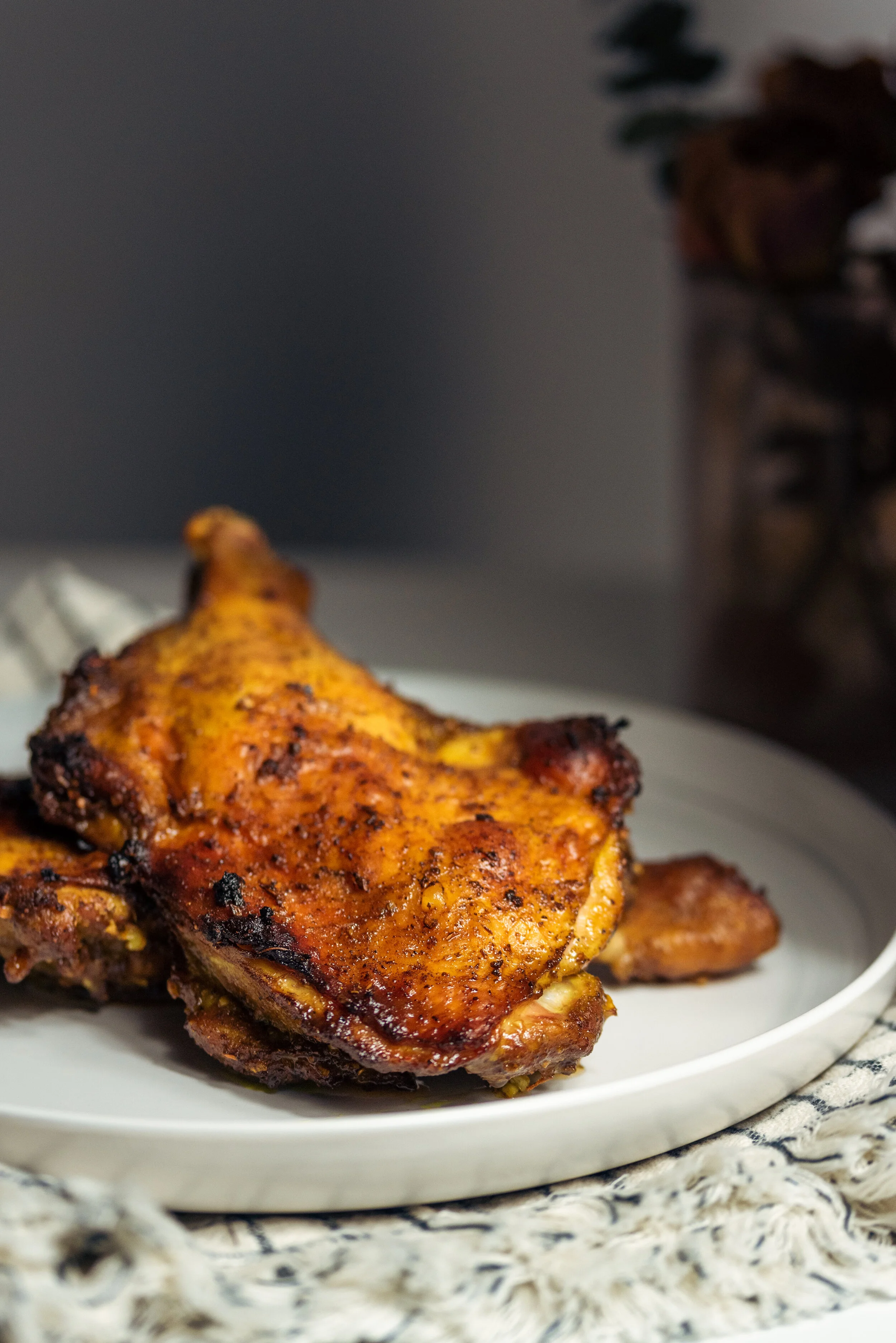 Five spice chicken is warm, deep, robust and fragrant. Five spice in itself is a balance of salty, sweet, sour, bitter, and spicy. This juicy, well marinated chicken boasts a crispy skin that's been roasted to absolute perfection.